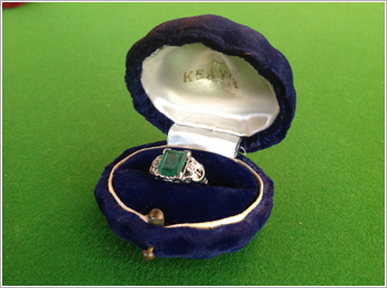 " ANTIQUE"Circa 1900's - 3 carat emerald with 2 rose cut diamonds, one on either side. Set in white |